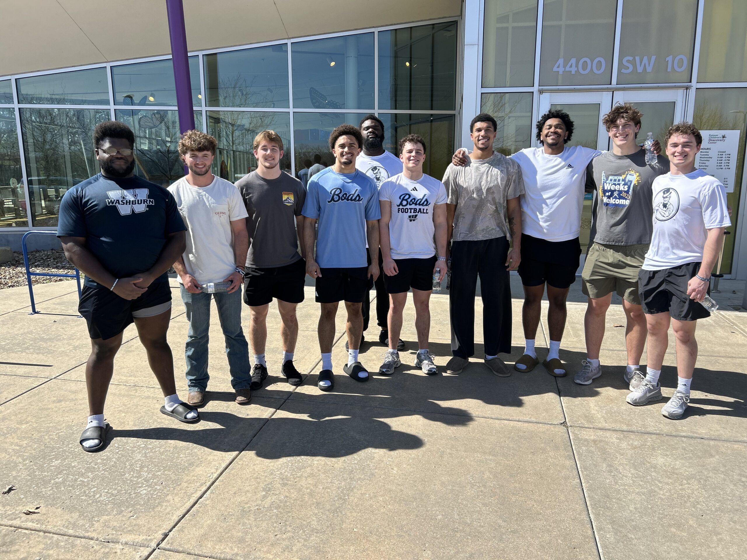 The Washburn University football team recently brought their teamwork off the field and into the community during a volunteer day at the Kansas Children’s Discovery Center.