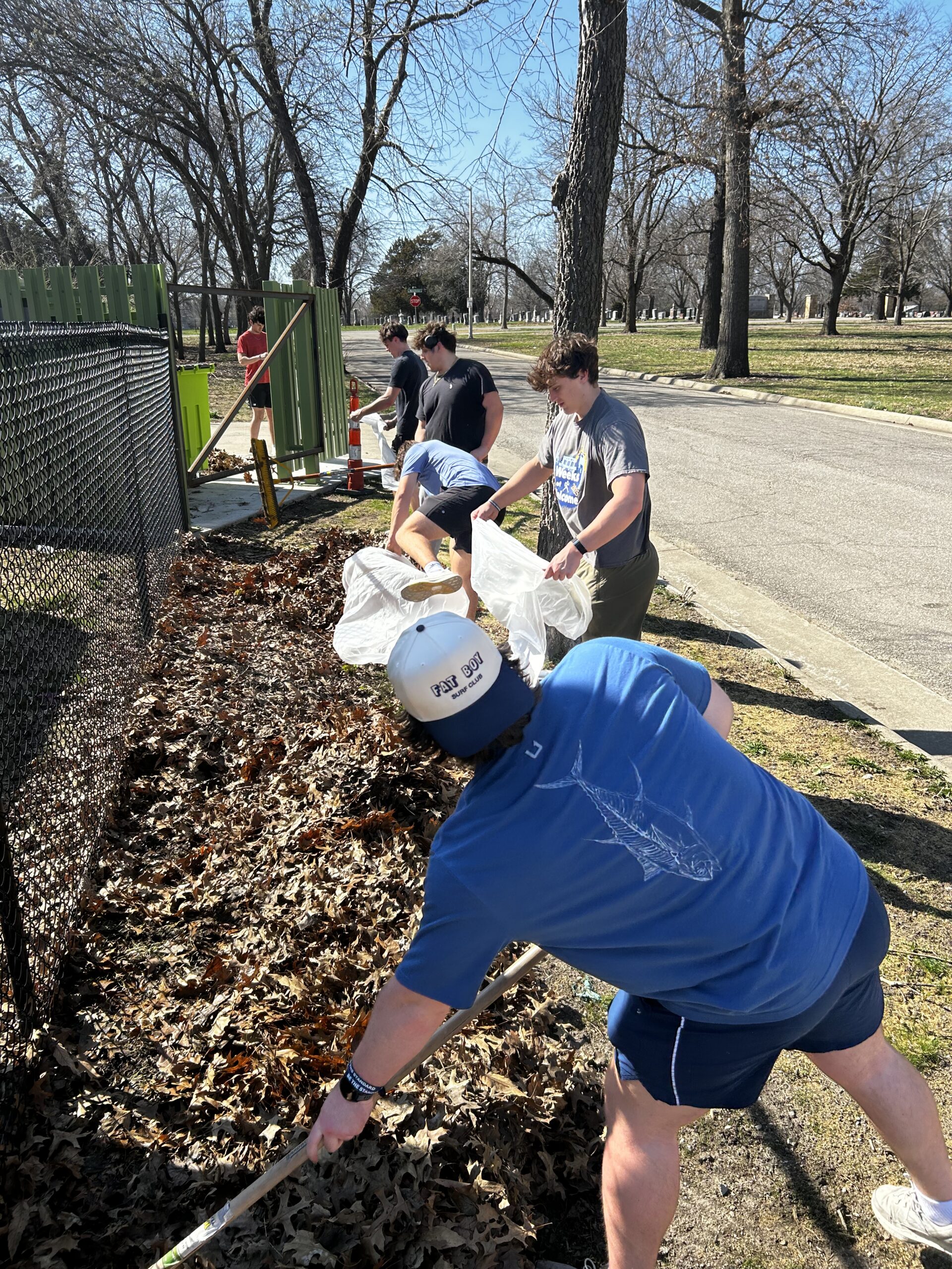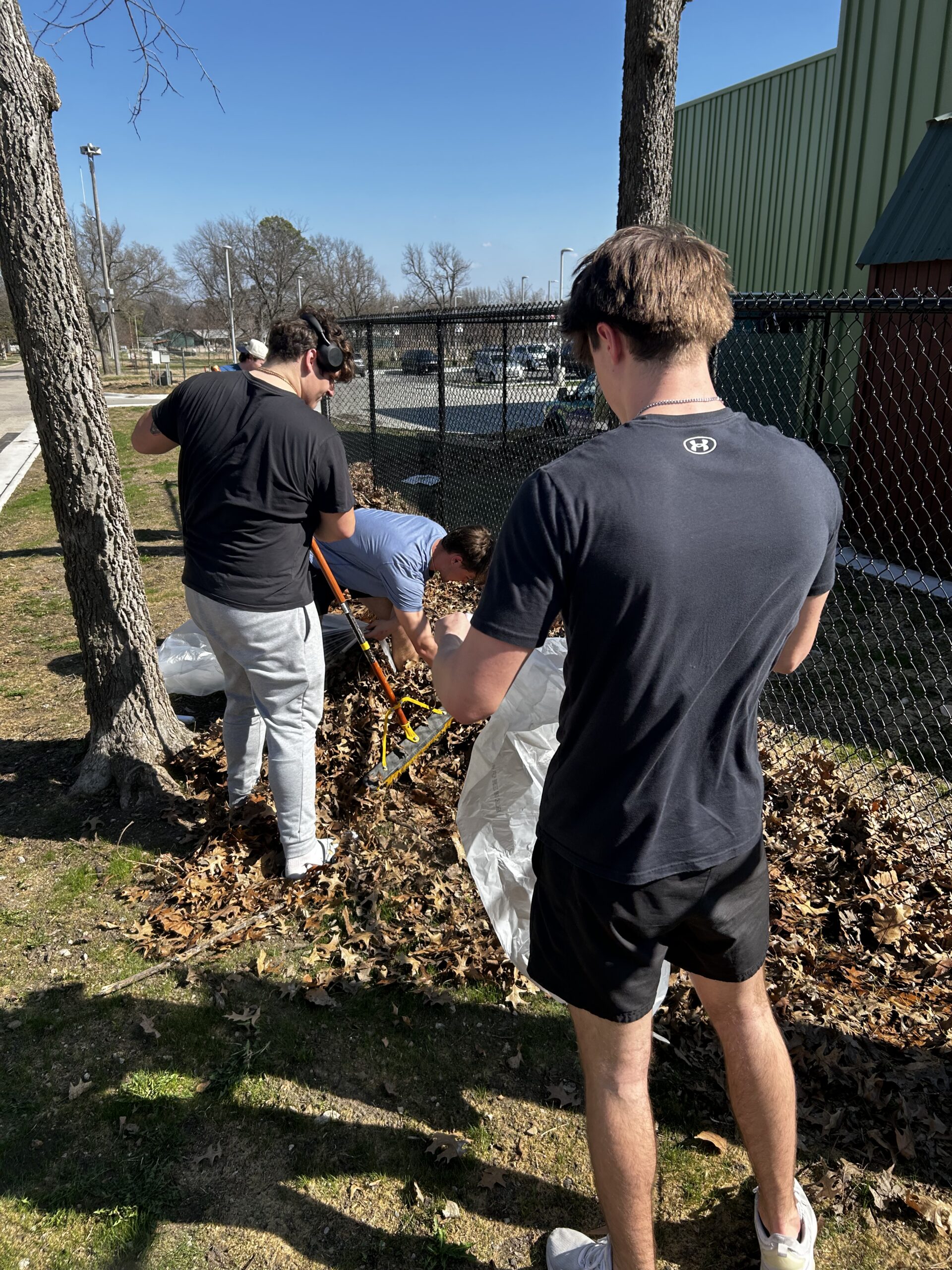 Thirty student-athletes spent the afternoon helping care for the Discovery Center’s outdoor spaces. The group worked together to pick up trash around the parking lot and building perimeter, weed the landscaping at the front entrance, and clear leaves from several areas of the property.